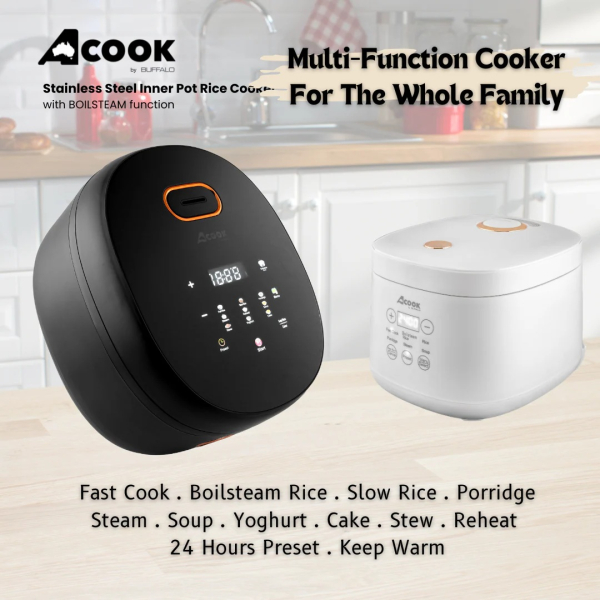 ACOOK BY BUFFALO BOILSTEAM STAINLESS STEEL INNER POT RICE COOKER 5L (10 CUPS)