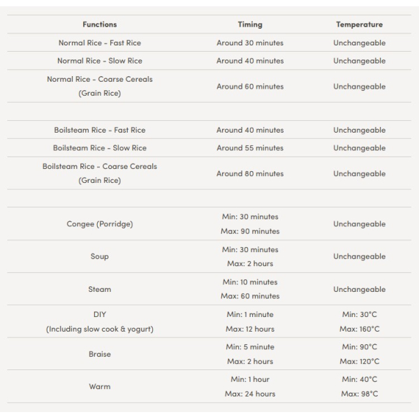 Congee, Soup, Steam, Stew, Braised, Reheat, Warm, 24 Hours Preset