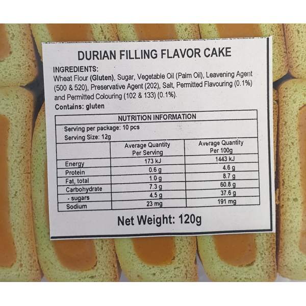 DURIAN FILLED FLAVOURED CAKES 120G