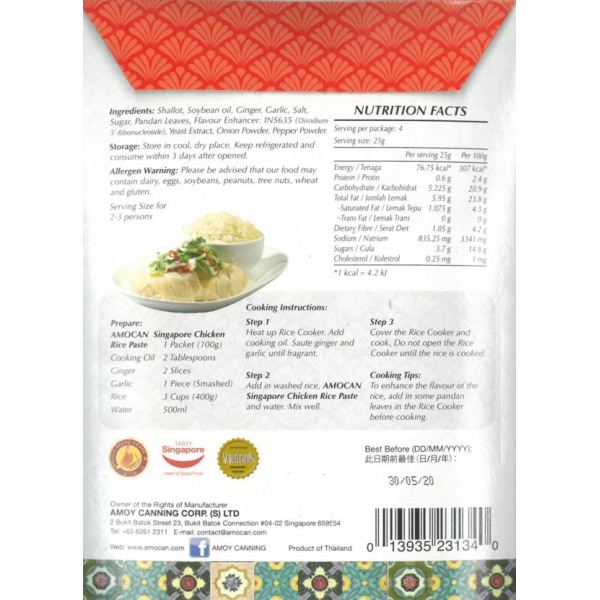 SINGAPORE CHICKEN RICE FLAVOUR PASTE 100G X 10'S X 10BOX