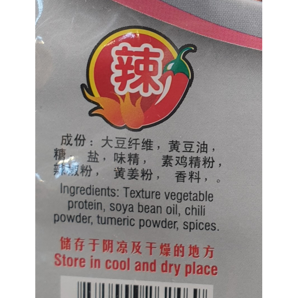 Use for spring rolls, rice/noodle/salad toppings, bread filling, and more. Ingredients: Textured vegetable protein, soy bean oil, chilli powder, turmeric powder, spices