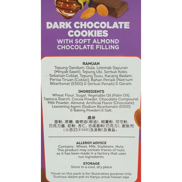 YIMU DARK CHOC COOKIES WITH ALMOND CHOC 60G (VA)