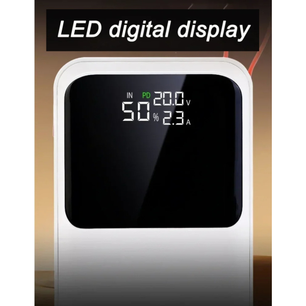A smart LED digital display shows the remaining battery level so you always know how much power is left. Available in Black, White, Purple, Blue, and Pink, this power bank combines performance, style, and convenience in one powerful portable charger.