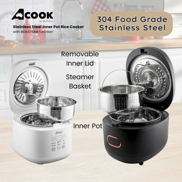 ACOOK BY BUFFALO BOILSTEAM STAINLESS STEEL INNER POT RICE COOKER 5L (10 CUPS)