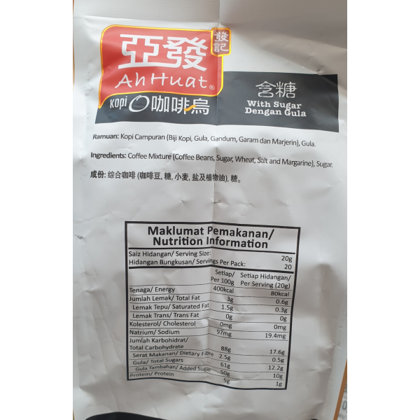 AH HUAT KOPI O WITH SUGAR 20'S X 20GM