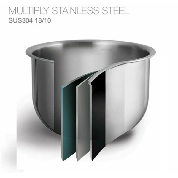 Its inner layer is also made of food-grade stainless steel. The multi-ply stainless steel inserts can be placed directly on a cooktop. It's scratch-resistant; any scratch marks will not cause any damage to the insert.