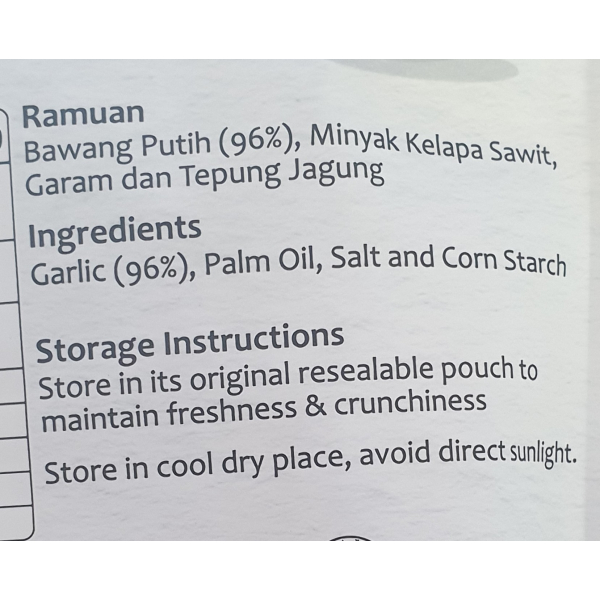 CRISPY GARLIC CHIPS 85G POLYBAG