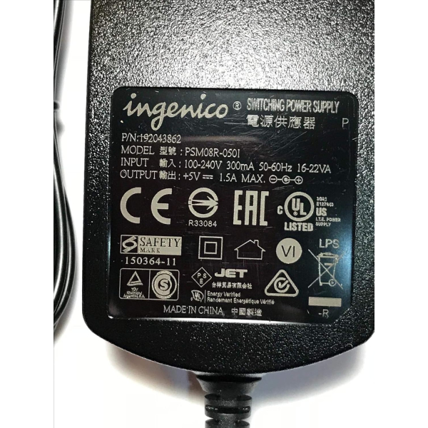 INGENICO SWITCHING EFTPOS POWER SUPPLY 192043862 PSM08R-0501 +5V 5V 1.5A