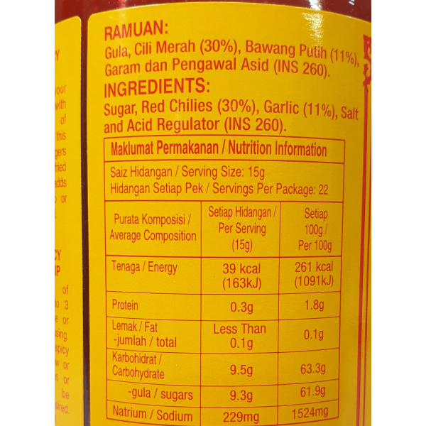 LINGHAM CHILI GARLIC SAUCE 340G (V)